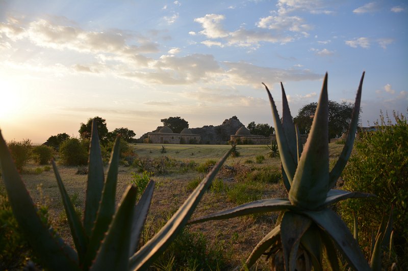 Sunday morning we were up early and set out to hike to morning church. We parked about 1 km away from the rocks and walked the red dirt road. Bright aloa plants dotted the landscape and >>> on first look the rock looks like s straight face but upon closer inspection there is a cleft in the rock and passagel that cuts up at a good angle. one through there we were able to clamber up the side of the red rock to a plateau cut at the top. Here is the church and it courtyard were . After spending time praying here and exploring the inside of the church we followed a narrow trail cut into the rock to the front of the rock face. Here high above the plains below is a hobbit size door into a cave church carved into the stone.